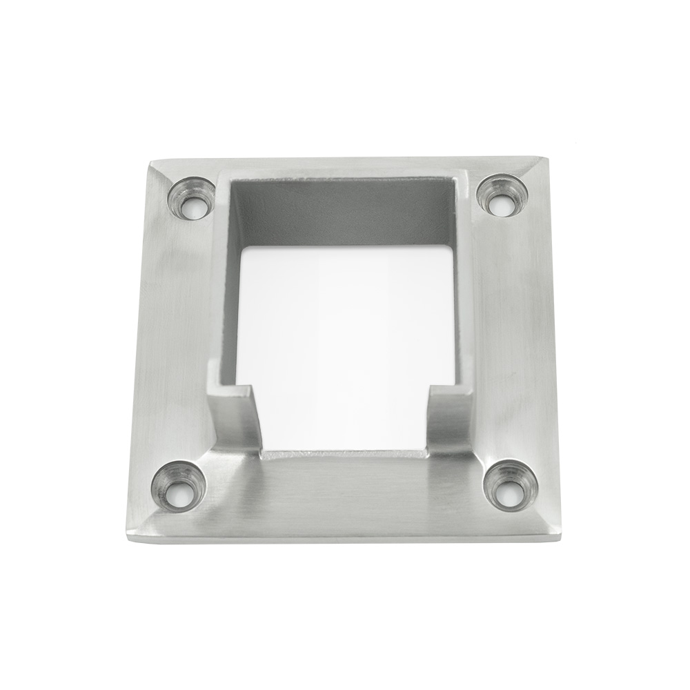 The 316 Stainless Steel End Flange for 1.67″ x 1.67″ Square Top Cap Rail for Glass Railing from West Railings is the accessory needed to connect the square top cap rail to a perpendicular wall for extra support.