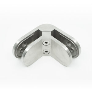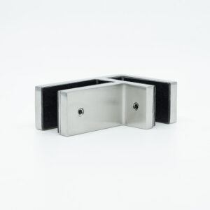 The 316 Stainless Steel Glass-to-Glass Corner Clamp for Glass Railing – Model A from West Railings is the clamp needed to connect glass guardrail panels together on a corner (or 90-degree angle) for extra support.
